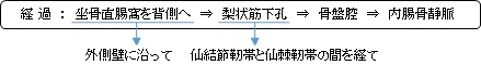 「 内陰部静脈は肛門の周囲の肛門静脈叢から出てくる肛門静脈,会陰や陰部からの血液をみちびく陰嚢静脈( 陰唇静脈 )と陰茎深静脈 ( 陰核深静脈 ) を受けとり,同名動脈に伴なってゆき,下臀静脈にはいる.