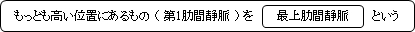 ・ 第1肋間静脈 ( = 最上肋間静脈 ): 左右とも腕頭静脈( または椎骨静脈? Wikipedia )に合流する。