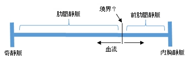 もし、肋間静脈と前肋間静脈が連続した血管ということになると、あ部分(胸骨に近い部分)を境に肋間静脈の血流は後方に流れ、前肋間静脈の血流は前方に流れるなることになると思われる。