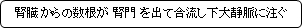 ・左腎静脈の方が右腎静脈よりも長く、腹大動脈の前を横切る。