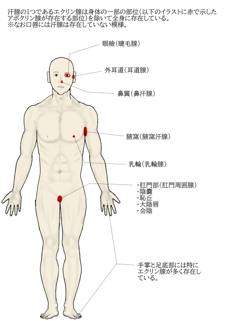 ・「管腺体周囲の平滑筋(筋上皮細胞)は小汗腺に比べて発育良好である。 」(日本人体解剖学)