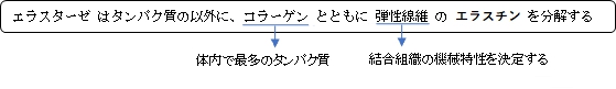 ・「エラスチンまたはそのほかのタンパク質を加水分解する反応を触媒する酵素」(化学事典)