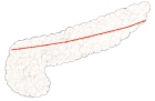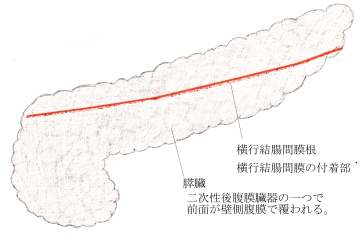 横:上縁)膵臓の横行結腸間膜根にあたる部分で約15㎝から20㎝程度と推測される。