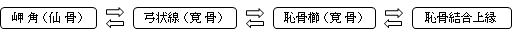 ・骨盤に見られる以下の部位を結んでいる稜線で、骨盤の内腔を1周している。腸骨恥骨線とも。