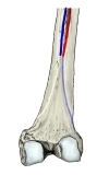 The medial is less marked, especially at its upper part, where it is crossed by the femoral artery. It ends below at the summit of the medial condyle, in a small tubercle, the adductor tubercle, which affords insertion to the tendon of the adductor magnus.」
