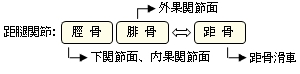 外果関節面 ( がいかかんせつめん、英:articular surface of lateral malleolus) 腓骨にある関節面の一つで、下端(外果)の内側にある三角状の関節面のこと。脛骨にある関節面とともに距骨と関節をし距腿関節を形成している。 右腓骨 (内側面) 右腓骨・脛骨 (下端) 右腓骨・脛骨 (下面) 【イラスト・写真を掲載しているサイト】 ・標本の写真(①だと思われる) ・距腿関節の断面イラスト ・距腿関節付近のレントゲン画像
