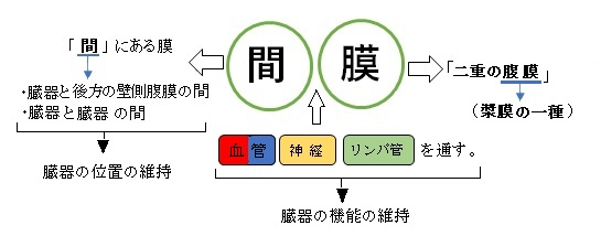 間膜は腹膜が内腔へ伸びた構造物の一つとなる。