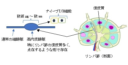 ・ナイーブT細胞、ナイーブB細胞が血流からリンパ節内に入る経路