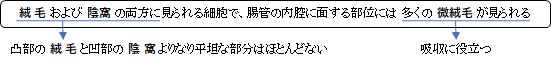 意味:空腸は糖質・タンパク質の吸収に特化しているため、微絨毛が長く密になって吸収効率を高めています。
