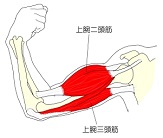 例えば、肘関節を屈曲させる時、上腕二頭筋が中心になって収縮するわけだが(主動筋)、それとは反対に伸展する上腕三頭筋と肘筋が上腕二頭筋の拮抗筋となる。