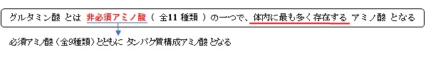 グルタミン酸は体内で合成できる非必須アミノ酸だが、条件によっては準必須アミノ酸と扱われる場合もある模様。