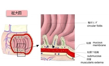 ・空腸の輪状ヒダは栄養吸収率を高めるために他の部位のものよりの高さもあり密度も最大となる