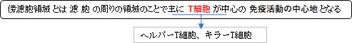 傍濾胞領域とは濾胞の周りのT細胞主体の領域で、樹状細胞なども多数見られる。
