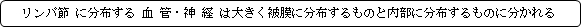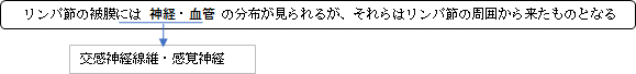 リンパ節の周りに存在する血管・神経が被膜に直接分布する。被膜に入ってからネットワークを築いて被膜全体を覆う形を取る。