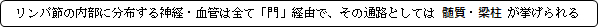 ・神経 : 感覚神経が主体で自律神経は少量、主に動脈に伴走して分布