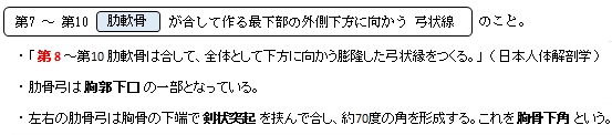 肋骨弓(肋骨) ( ろっこつきゅう、英:costal arch ) 肋骨弓とは 胸郭(右半分・前面) 胸郭(前面) 【参考にしたサイト】 ・イラストや写真を掲載しているサイト-Ⅰ ・イラストや写真を掲載しているサイト-Ⅱ ・イラストや写真を掲載しているサイト-Ⅲ ・イラストや写真を掲載しているサイト-Ⅳ