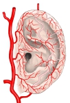 浅側頭動脈の前耳介枝、後耳介動脈 |