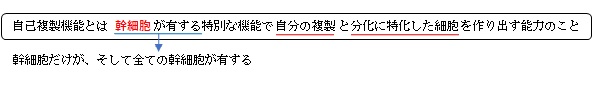 ・自己複製機能=幹細胞が自分自身を複製して維持する能力