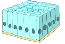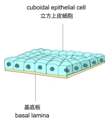 腎臓の細尿管、甲状腺の濾胞、汗腺・唾液腺・膵臓の小導管、卵巣の表面、水晶体の前面、腺房など |