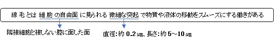 ・発生初期には一次線毛が一時的に存在する場合がありますが、成熟後は消失。