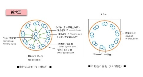 ・動性線毛も不動性線毛も内部構造が違い、外見上はほとんど区別ができない。