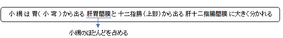 ・小網に対して胃の大弯から付近の内臓に広がる膜を大網と言う。
