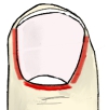 The nail wall (vallum unguis) is the cutaneous fold overlapping the sides and proximal end of the nail. The lateral margin (margo lateralis) lies beneath the nail wall on the sides of the nail, and the nail groove or fold (sulcus matricis unguis) are the cutaneous slits into which the lateral margins are embedded.