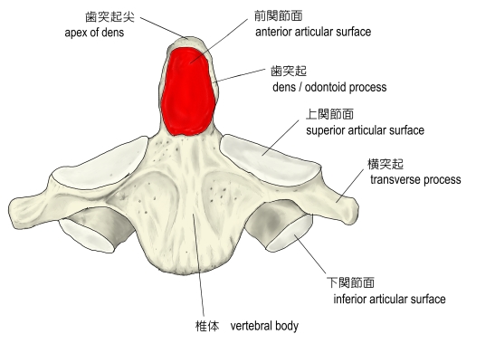 前関節面(軸椎) ( ぜんかんせつめん、英:anterior articular surface ) 前関節面とは 環椎(上面) 以下は「THE FREE DICTIONARY」の解説文となる。 「the curved articular facet on the anterior aspect of the dens of the axis that articulates with the facet for the dens of the axis on the anterior arch of the atlas.」 【参考になるサイト】 ・イラストや写真を掲載しているサイト-Ⅰ ・イラストや写真を掲載しているサイト-Ⅱ ・イラストや写真を掲載しているサイト-Ⅲ