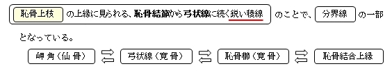 「の上縁は恥骨上枝につづく恥骨櫛である。」