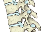 「Vertebrae are the 33 individual, interlocking bones that form the spinal column. Each vertebra has three main functional components: the vertebral body for load-bearing, the vertebral arch to protect the spinal cord, and transverse processes for ligament attachment. The spinal column consists of seven cervical, twelve thoracic, and five lumbar vertebrae in addition to five fused vertebrae of the sacral region and four fused vertebrae forming the coccyx. The vertebrae in each region have unique features that help them perform their main functions. Vertebrae are interconnected by facet joints that allow mobility in the spine. Intervertebral discs separate the individual bones providing additional weight-bearing support.」