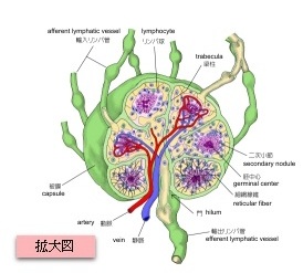 輸入リンパ管( ゆにゅうりんぱかん、英:afferent lymphatic vessel ) ・概 要 ・イラスト掲載サイト 【概 要】 ・輸送されるリンパの中には免疫細胞や異物・病原体が含まれる。 ■構造の特徴■ ・他のリンパ管同様、逆流防止のために弁が存在する。 ・壁の構造(3層構造) 内膜 : 単層扁平上皮(内皮細胞) 中膜 : 薄い平滑筋層 外膜 : 結合組織層 ■ 写真やイラストを掲載しているサイト ■ ・ イラストや写真を掲載しているサイト-Ⅰ ・ イラストや写真を掲載しているサイト-Ⅱ ・ イラストや写真を掲載しているサイト-Ⅲ