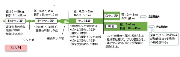 ・他のリンパ管同様、逆流防止のため弁を有する。