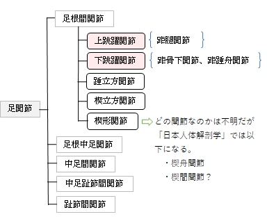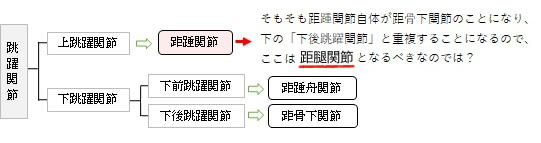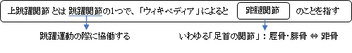 「距踵関節、距骨下関節および距踵舟関節は跳躍運動の際、協同して働くので、それぞれ上跳躍関節および下後跳躍関節および下前跳躍関節ともいう。」