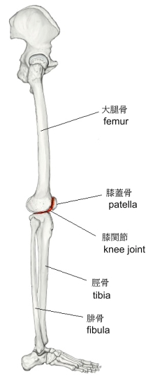 膝関節を構成する骨は大腿骨、脛骨、そして膝蓋骨の3つで、腓骨は含まれない。以下に、「大腿骨と脛骨との接合」と「大腿骨と膝蓋骨との接合」の2つに分けて考えていくこととする。