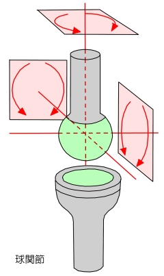 可動性の関節はその運動軸の数によって以下の3種類に分類することができる。