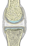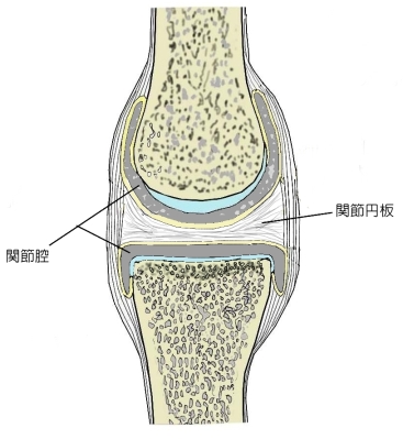 関節を構成する骨と骨の間にある隙間のことで、滑液が入っている。 |
