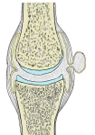 大きな関節においては滑膜が滑液を含んだ状態で関節包の外側へ飛び出すことがある。 |
