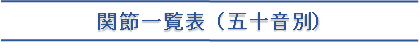 例:指節間関節には遠位指節間関節と近位指節間関節があるが、以下の表ではその全て(指節間関節、遠位指節間関節、近位指節間関節)を掲載している。また、別名があるときは、なるべく表の中に収めるようにしている。