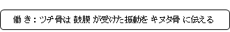 ・ossicle:小骨 ・middle ear:中耳 ・incus:キヌタ骨 ・eardrum:鼓膜 ・tympanic membrane:鼓膜 ・neck of malleus:ツチ骨頸 ・handle:ツチ骨柄 ・embryologically:発生学的に ・be derivede from~:~に由来する ・pharyngeal arch: