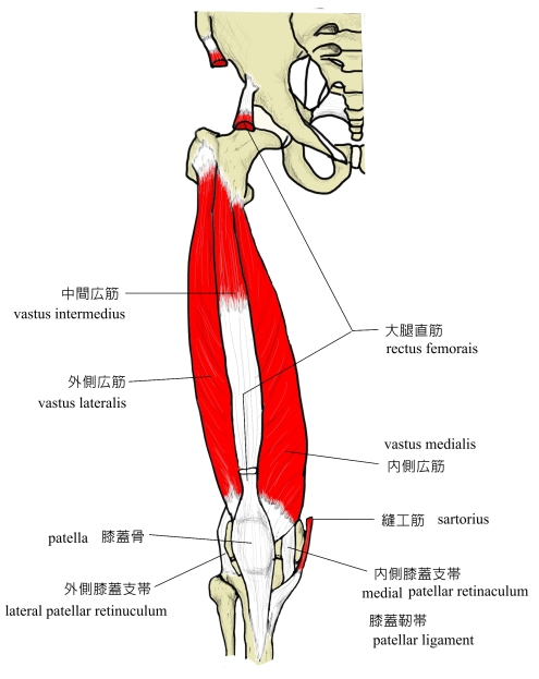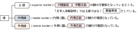 ・「Wikipedia」の「patella」の解説ページの「Muscles」には以下のような解説が見られる。
