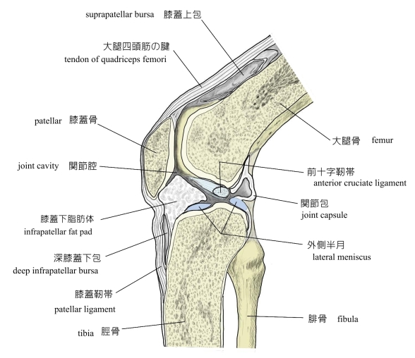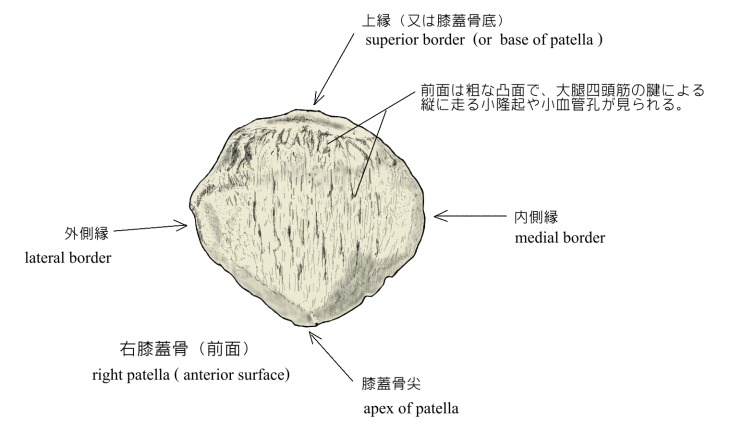 ・膝蓋骨は自由下支帯の大腿の骨の一つで、「日本人体解剖学 (上巻)