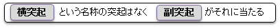 上関節突起の外側にある小さな隆起。その一部も本来の横突起が変形したものと考えられている。 「船戸和弥の解剖学テキスト、運動系」では以下のような解説をしている。 「乳頭突起および副突起が本来の横突起である。」 |