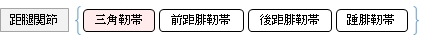 「 内側側副靱帯または三角靱帯は関節包の内側を強める。内果から起こって下方に向かって三角形に分散し、これをその遠位での付着部によって次の4線維束(脛舟部、脛踵部、前脛距部、後脛距部)に分けることが出来る。多少の弾性線維を含む。