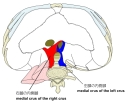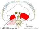 以下、「日本人体解剖学 (上巻) 「内側脚には一つの裂け目があり、大内臓神経、奇静脈(または半奇静脈)が通る。この裂け目の外側を中間脚といい、小内臓神経が通る。」 (左脚だけにあるのであろうか…?) |