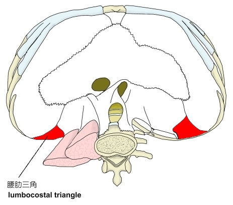 外側弓状靭帯と肋骨部の間の筋束がない部分。 |