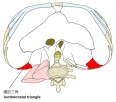 肋骨部と胸骨部の間の筋束がない部分。上腹壁動/静脈とリンパ管が通っている。 ※右のイラスト正確性に欠ける可能性あり! ⇒ 詳細ページ |