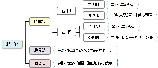 大動脈裂孔、 中間脚、 内側脚、 内側弓状靭帯、 腰肋三角 )