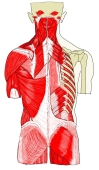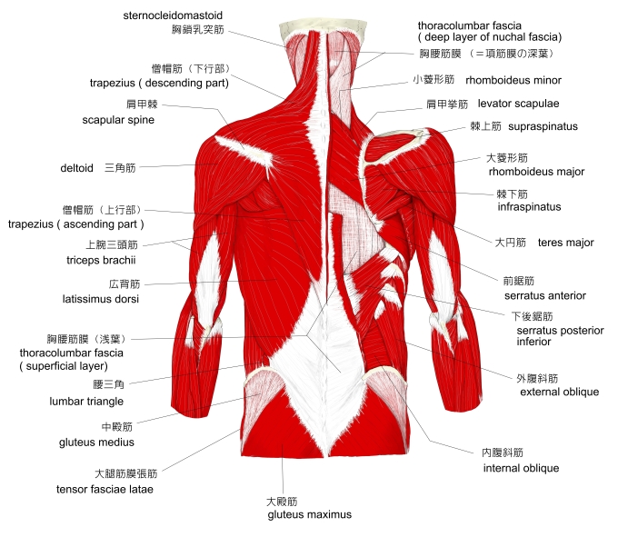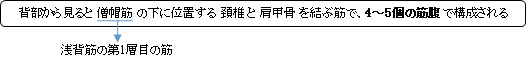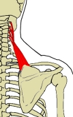・ 名称通り肩甲骨を上げる筋肉となり、この筋肉が収縮することにより肩こりの原因となる。