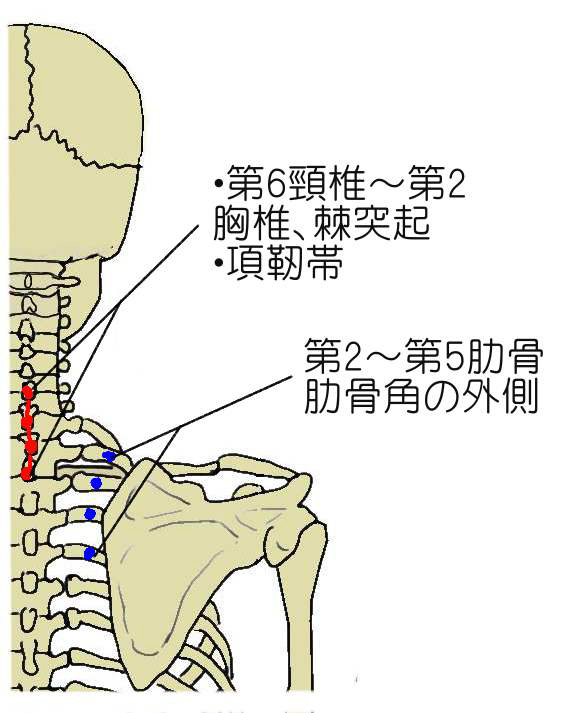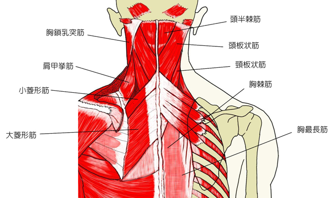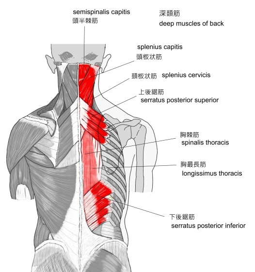 ・ 「 肩甲骨の高さにあって、内側上方から外側下方へ斜めに走る薄い筋 」 ( 日本人体解剖学 )