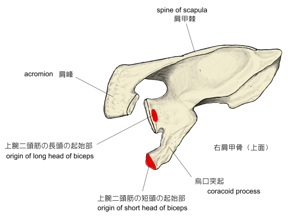 ・ scapula : 肩甲骨 ・ muscle belly : 筋腹 ・ supinate : 回外する ・ corkscrew : コルク栓抜き